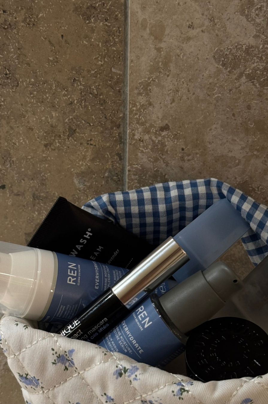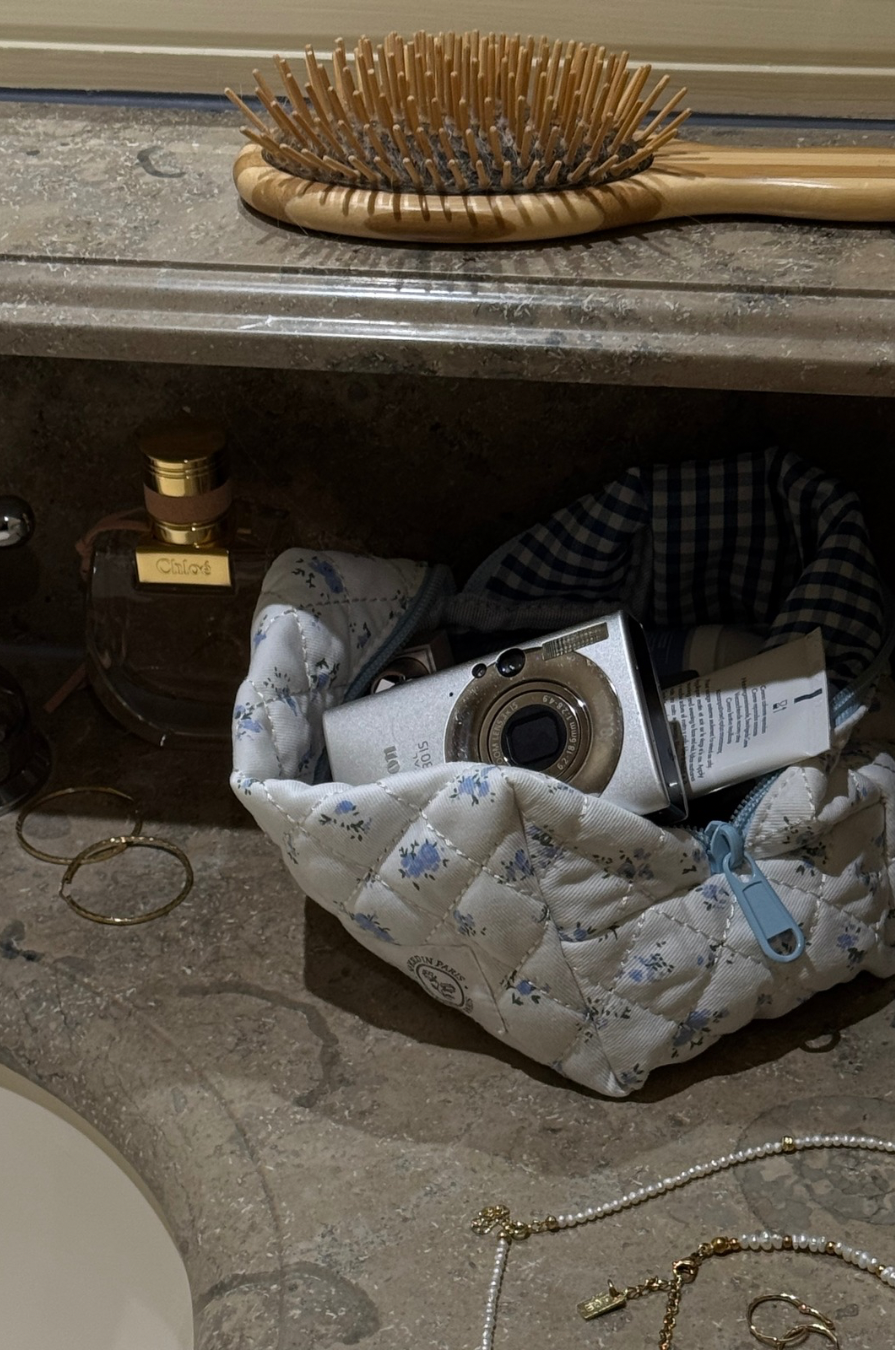 Our limited edition vintage inspired cosmetic bags are here! Handmade with love, unique and compact. Perfect size for makeup, skincare, haircare and accessories. Featuring vintage forget-me-not floral print x blue gingham lining.