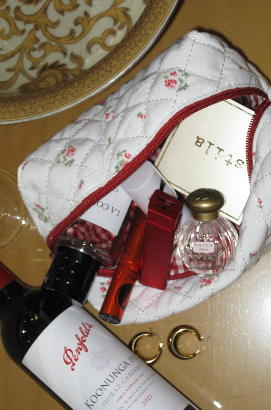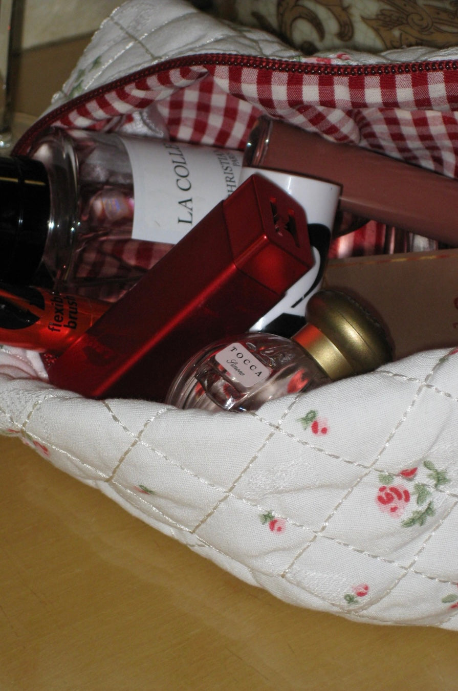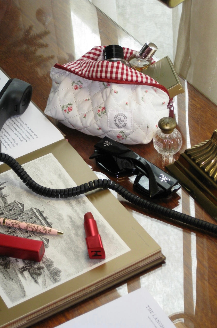Our limited edition vintage inspired cosmetic bags are here! Handmade with love, unique and compact. Perfect size for makeup, skincare, haircare and accessories. Featuring Heritage Rose print x red gingham lining.